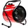 Теплопушка устанавливается на пол в помещение, которое требует обогрева, и подключается к электросети 380В. На корпусе устройства имеются 2 регулятора. С помощью одного вы можете выбрать режим работы агрегата: 30 Вт (вентиляция), 3000 Вт (нагрев на средней мощности), 5000 Вт (полная мощность). После выбора режима можно подобрать оптимальную температуру. Терморегулятор нужно медленно вращать по или против часовой стрелки, увеличивая или уменьшая градусы. Основу конструкции электрической теплопушки составляют ТЭН и вентилятор. Первый обеспечивает нагрев воздуха, второй отвечает за конвекцию и распределение тепла в помещении. Наличие системы термозащиты обеспечивает надежность работы устройства и его безопасность в случае перегрева. При необходимости прибор можно перенести в другое место. Тепловая пушка весит 8,3 кг и оснащена удобной ручкой.