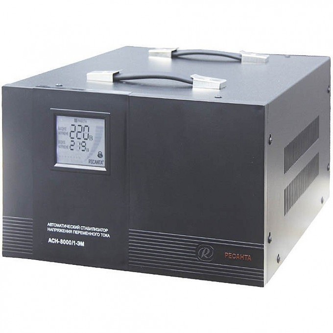 Стабилизатор напряжения РЕСАНТА АСН-8000/1-ЭМ электромеханического типа предназначен для выравнивания входного напряжения и защиты приборов от перепадов напряжения с суммарной мощностью до 8 кВт. Работает с напряжением 220В с точностью до +/-2%. Устройство оснащено фильтрами сетевых помех, предотвращающими искажение частотной синусоиды, микропроцессорным управлением и дисплеем, отображающим параметры напряжения. Превышение пределов поддерживаемого входного напряжения автоматически отключает подачу питания. Прочный корпус защищает внутренние узлы аппарата от повреждений. Прибор может обеспечивать стабильным питанием - телевизор, ресивер, DVD проигрыватель, кассовый аппарат, газовый котел.